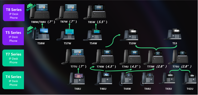 - Yealink T-serie: Modellen T73x, T74x, T77x, T85W en T87W.